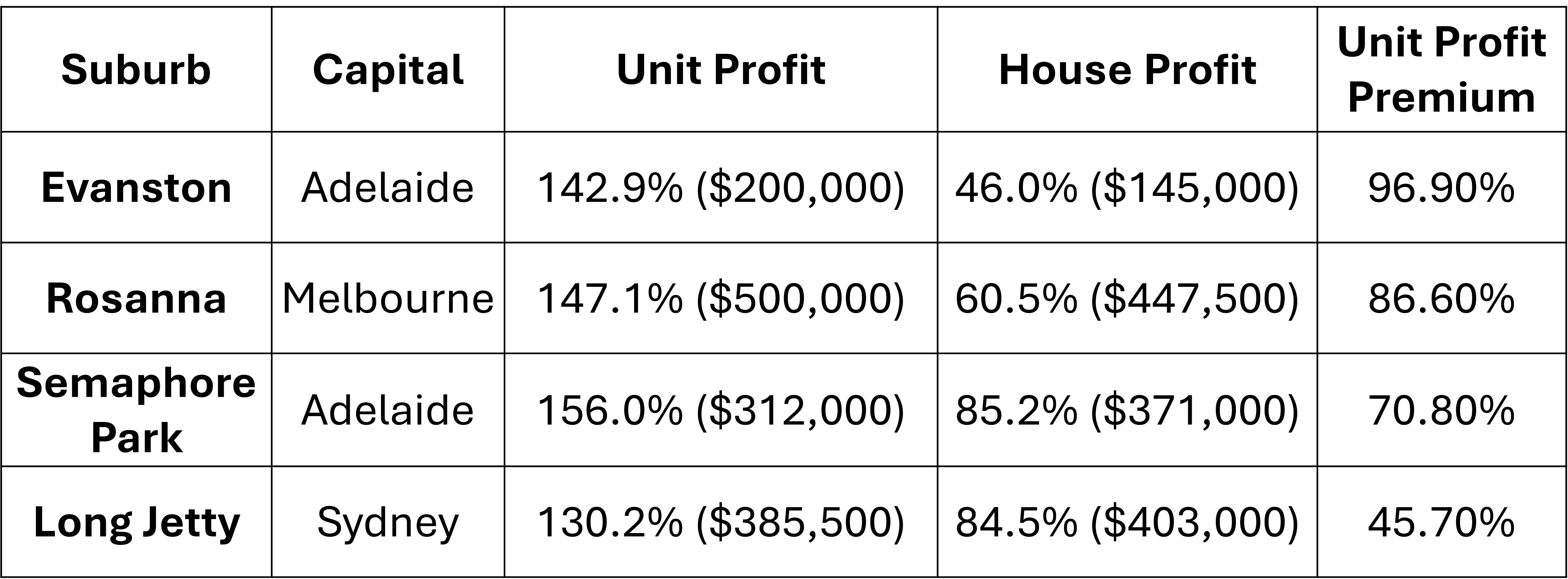 Long Jetty, for instance, sees units outperform houses by 45.7%, driven by consistently high demand for more affordable housing options. Overall, Australia’s property market continues to generate significant profits, with only a small fraction of suburbs experiencing loss-making sales.