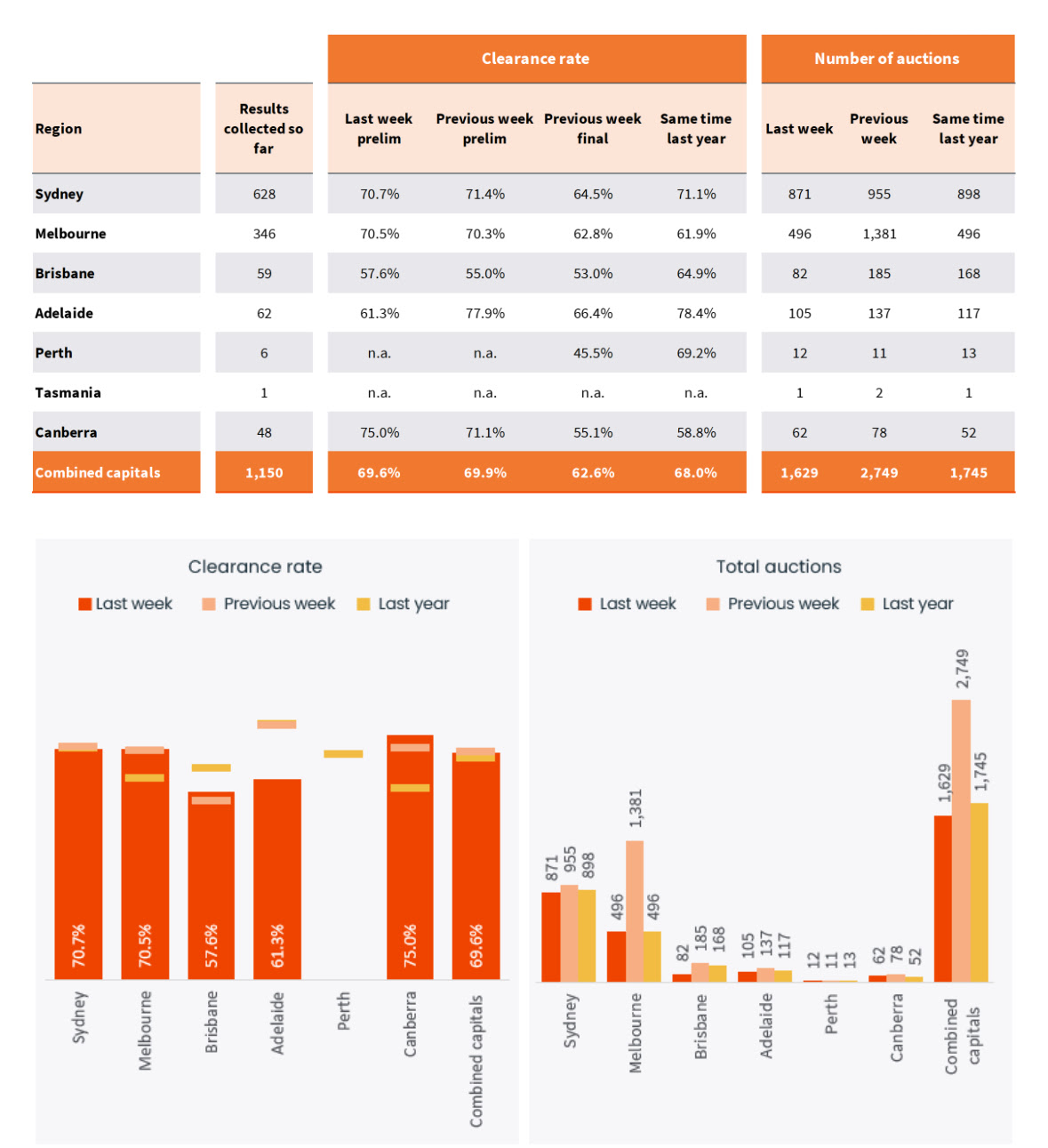 Activity in the property market remains cautious but steady. Auction clearance rates hovered around the high-60s, with the combined capital cities’ preliminary clearance slipping to ~69.6% last week. This marks a slight cooling from earlier in the year, influenced by a long weekend in Victoria and even weather disruptions in Queensland. Despite fewer auctions, buyer turnout is solid in Sydney (around 70% success rate) while some smaller markets like Adelaide have seen clearance rates dip into the low 60s.