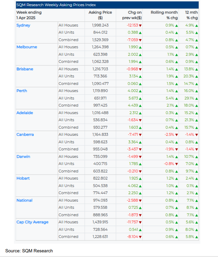 SQM’s figures show that asking prices rose nationally by 0.8% for houses and 0.7% for units. Vendors still believe they hold power—especially in cities like Perth and Brisbane, which posted strong gains.