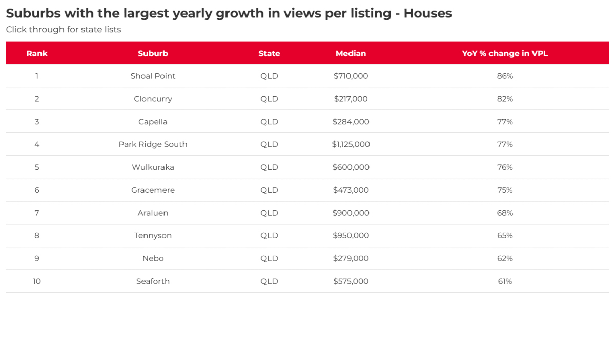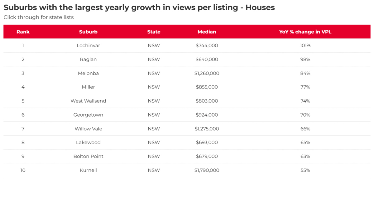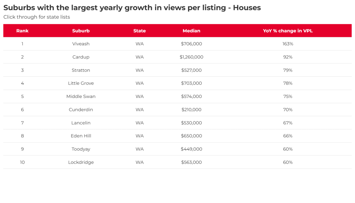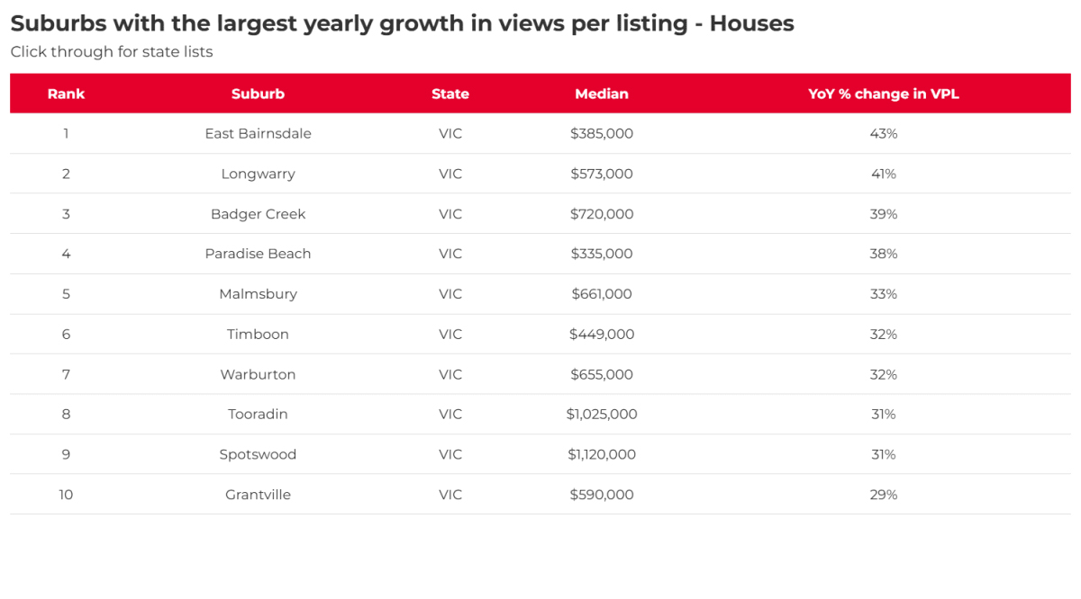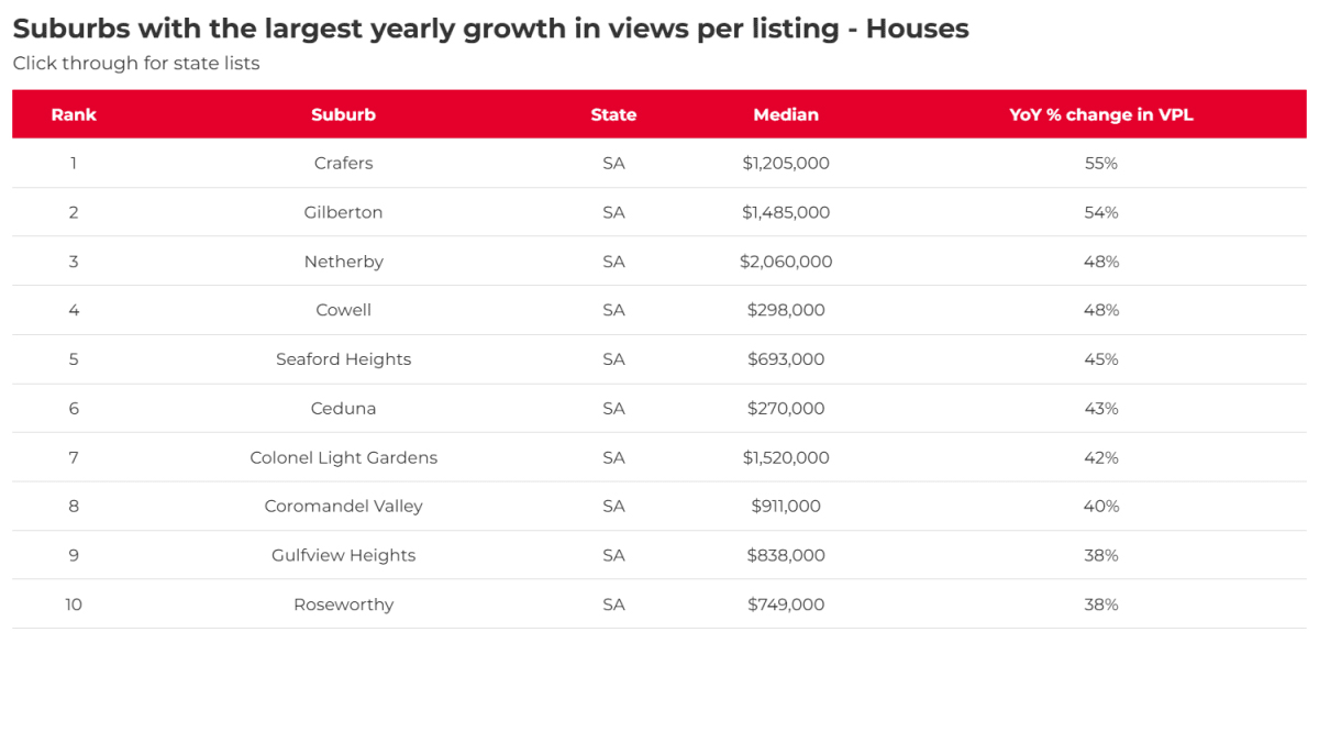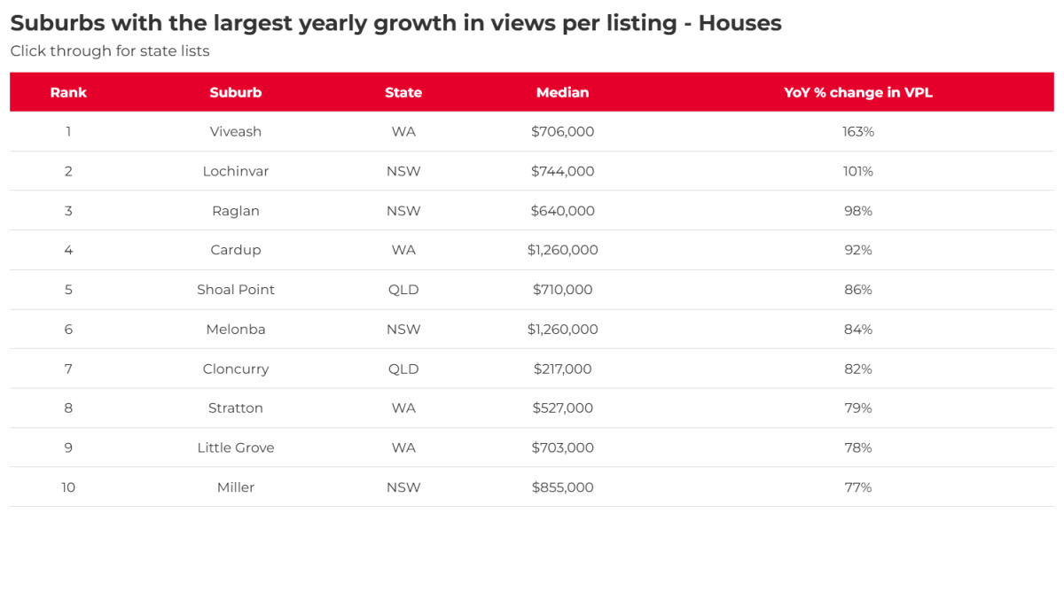 Here are the top 10 suburbs in Australia in terms of Views per Listing: