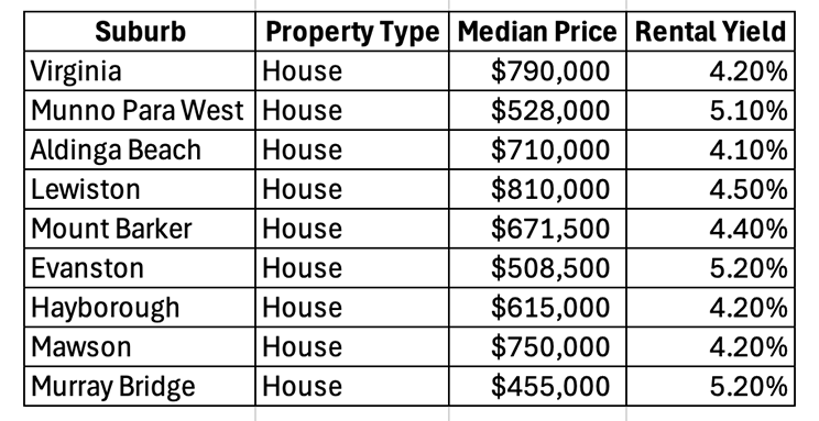In South Australia, suburbs in Playford such as Virginia and Munno Para are affordable with solid rental yields, and the region is well-connected to Adelaide’s transport network.