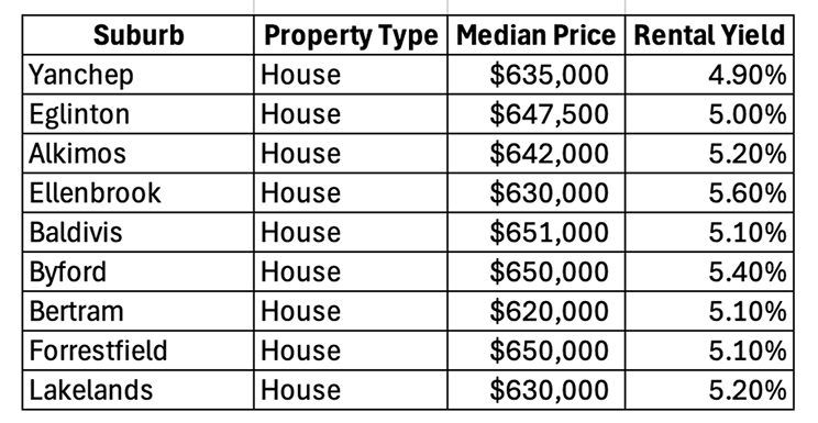 Western Australia offers excellent affordability and high rental yields, particularly in Yanchep and surrounding areas with strong population growth projections.