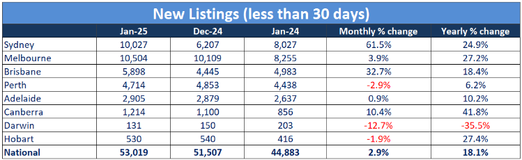 New listings nationwide – +2.9% MoM | +18.1% YoY (Total: 53,019 new properties)