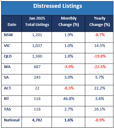 Distressed listings – +1.6% MoM, but still 8.9% lower YoY (Suggesting improving financial stability for sellers)